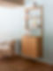 MOD is a versatile shelving and cabinet storage solution crafted to fit any environment - whether it's functioning as an elegant shelving system for the living room, a storage piece in the kitchen, or a stylish display in a shop or office space. The system consists of wall-mounted solid oak wood rails, with shelves available in both aluminum and oak wood and a cabinet in oak wood.
